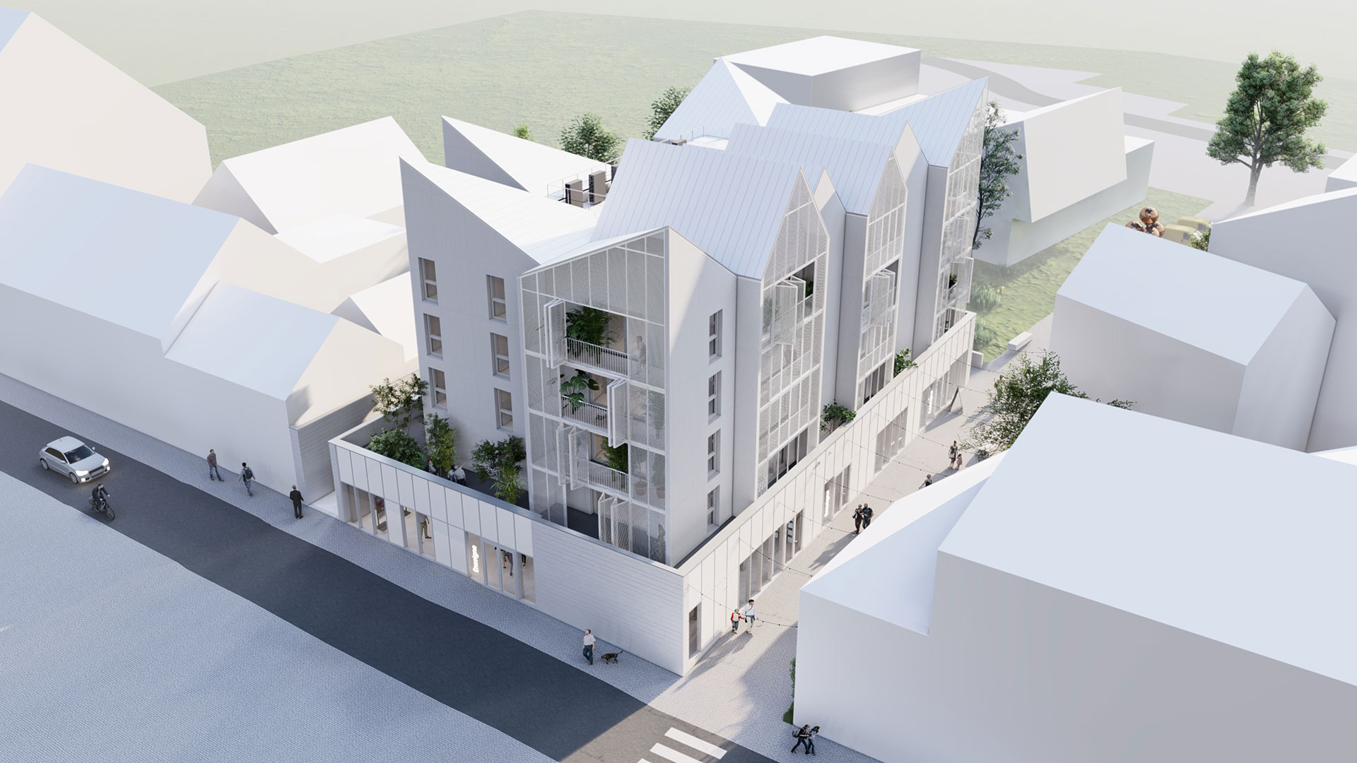 Ce nouvel immeuble s’implante sur une ancienne friche du centre-ville ; il ne vient donc pas consommer de terres agricoles mais réemployer un foncier inutilisé.